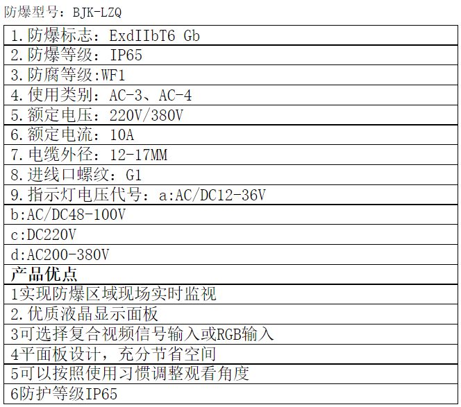 主要用于石油開(kāi)采、煉油、化工、醫(yī)藥、海洋石油平臺(tái)、油輪、油庫(kù)、軍工、金屬打磨拋光、糧食生產(chǎn)儲(chǔ)存等爆炸性氣體環(huán)境和爆炸性粉塵環(huán)境,作為自動(dòng)化、信息化系統(tǒng)的顯示、監(jiān)視之用;